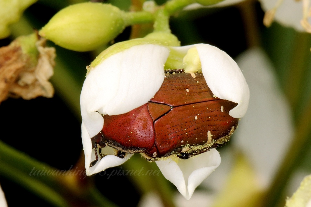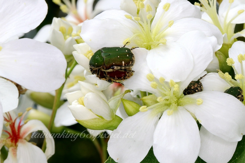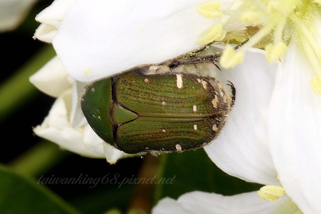 台灣小綠花金龜拍攝於苗栗三義油桐花(↑)