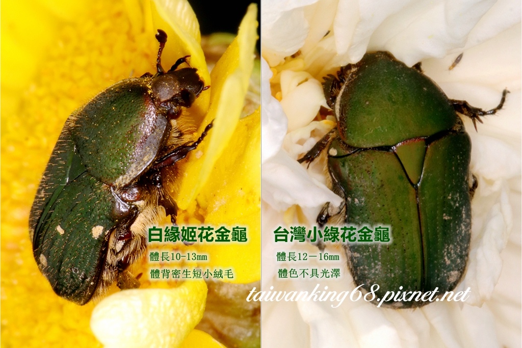 白緣姬花金龜與台灣小綠花金龜比較圖