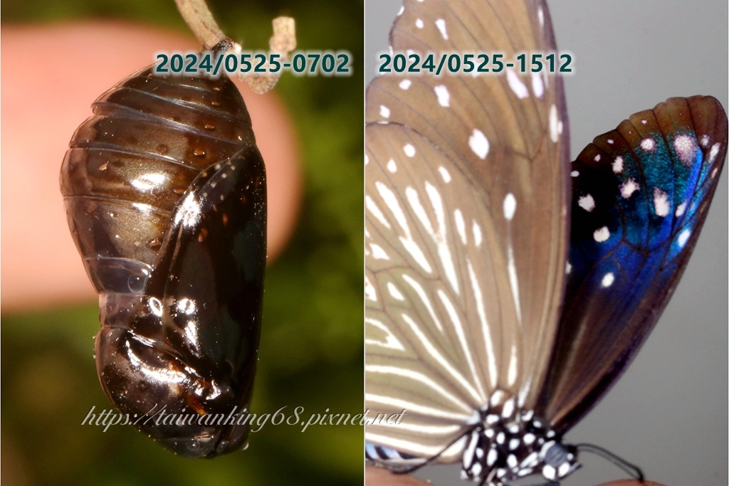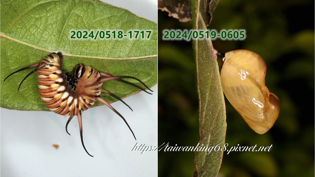 果然如我所預料,2024/0513帶回端紫斑蝶幼蟲回家後的第六天傍晚(2024/0518)