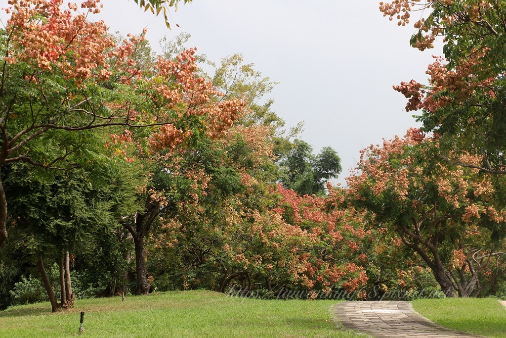 位於台中后里環保公園種植近百棵台灣欒樹,目前已從一片金黃色的小花轉為紅色蒴果