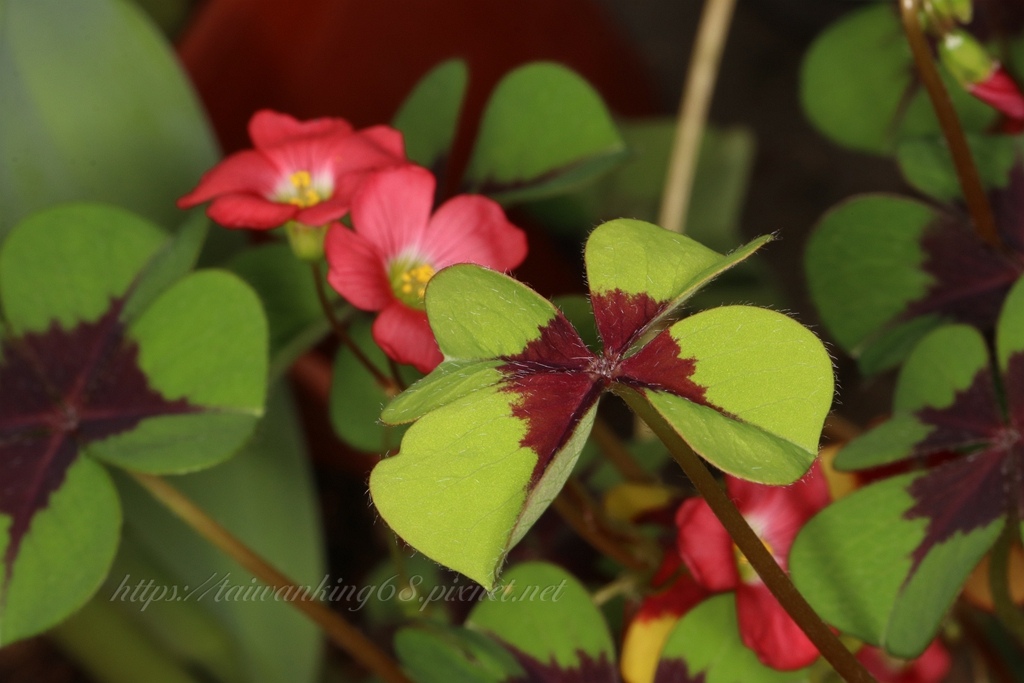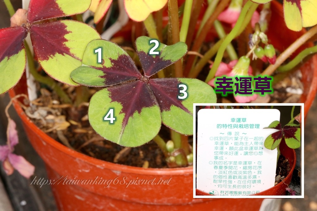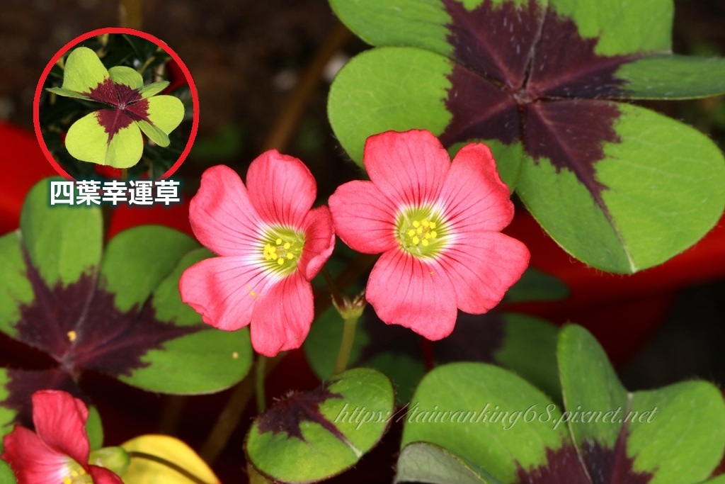 雖說四葉草不開花,但是萌芳花卉農場賣的四葉草卻開著如三葉草(酢漿草)的紅色花朵?