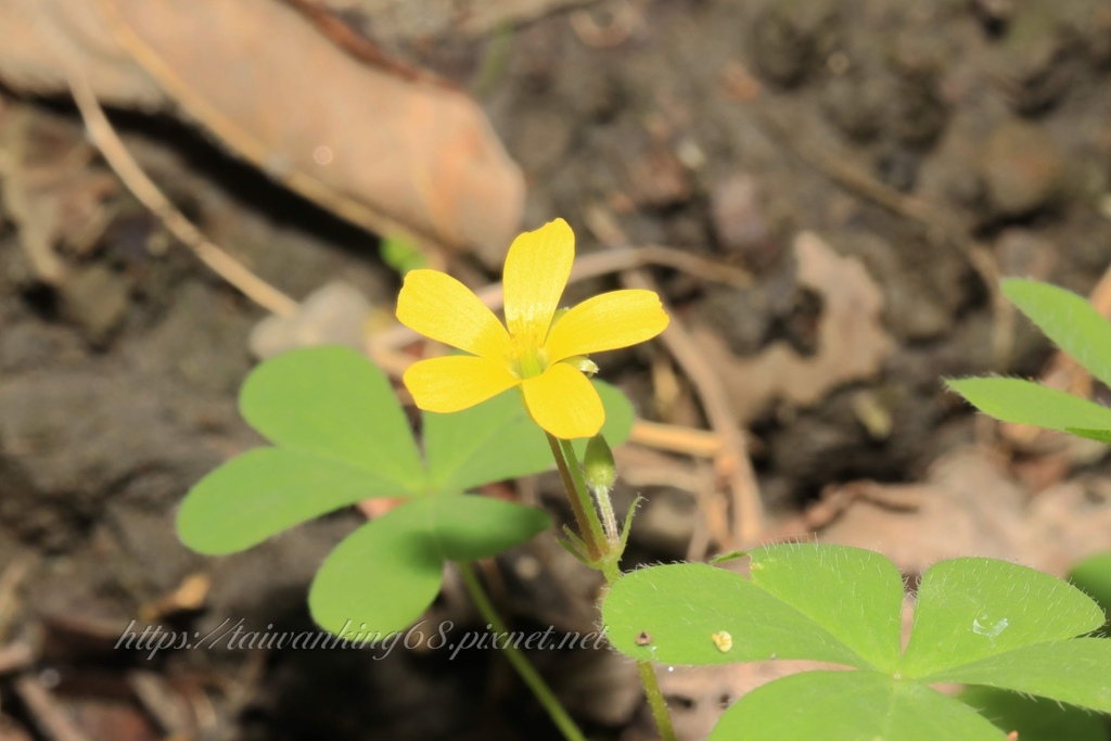 台灣田野間除了最常看到的紫花酢漿草外,還有上圖的黃花酢漿草(↑)