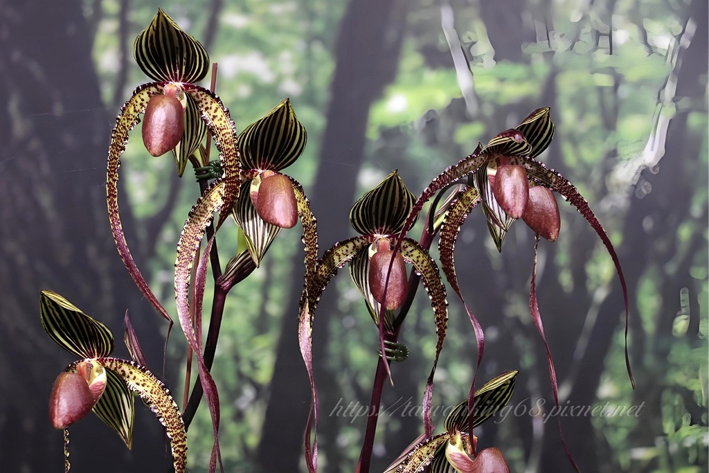 上左圖是今年台灣國際蘭展獲得總冠軍的《仙履蘭愛德華王子》蘭花