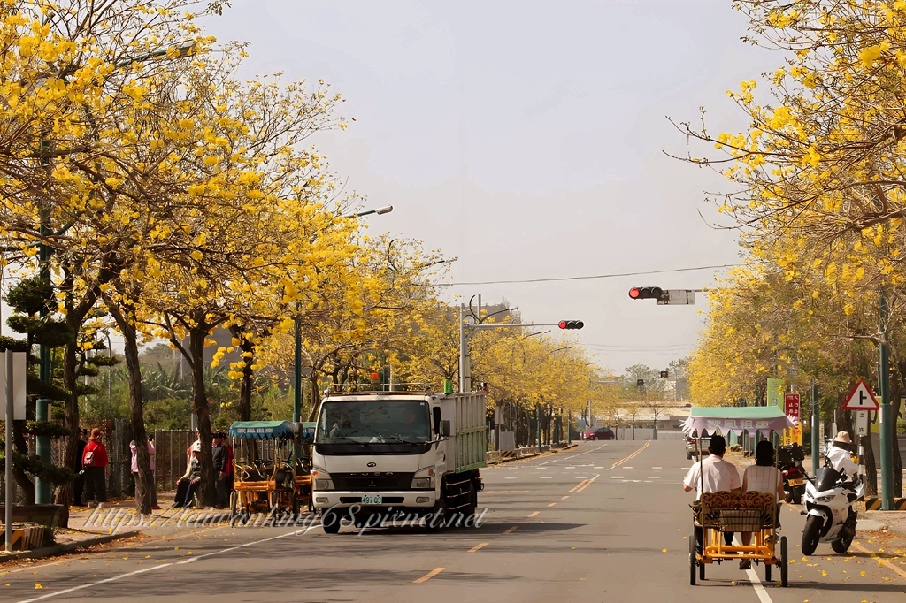 六年前因綠化工程在這條路的兩旁種植約三、四百棵黃金風鈴木,今年終於大爆發