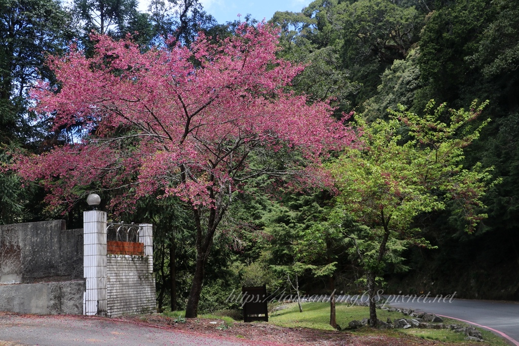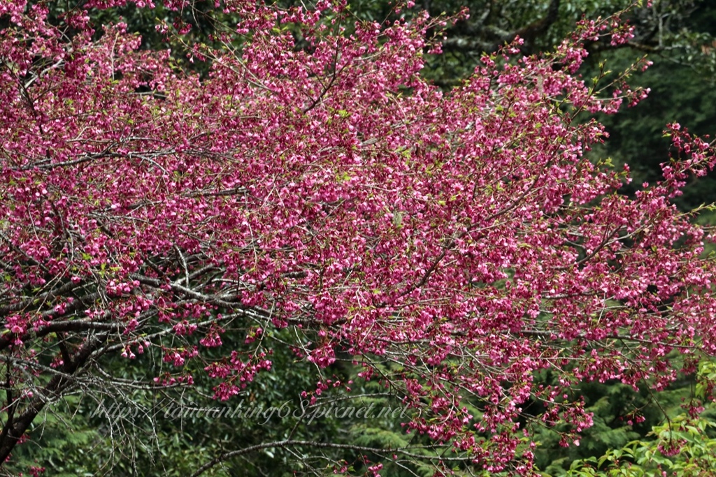 時序進入三月底,大雪山的山櫻花都已凋謝,難得雪山派出所前面的緋寒櫻仍盛開著。高山的緋寒櫻通常比平地的櫻花還要大朵,且顏色也和平地櫻花不一樣?我就曾為此事問大雪山服務人員?
