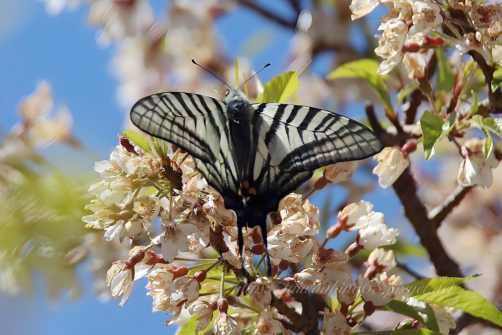 昇天鳳蝶屬中型鳳蝶,只見牠快速在霧社櫻花上飛舞,偶爾短暫停留,極不易拍攝