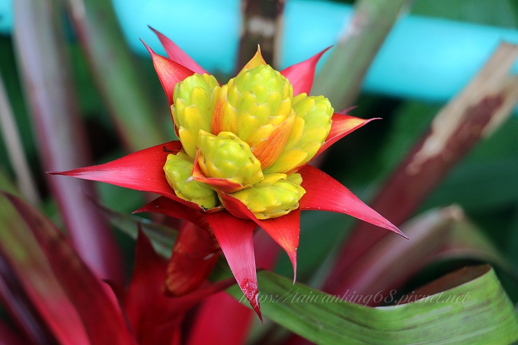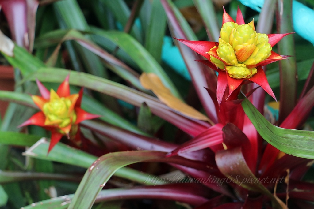 觀賞花用的鳳梨屬火球鳳梨(↑)