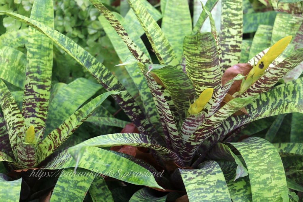 虎紋鳳梨葉面花紋與虎紋路類似而得名,拍攝當時尚未開花(↑)