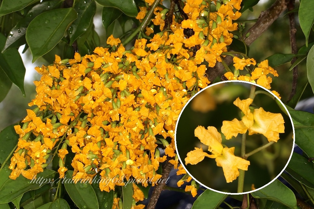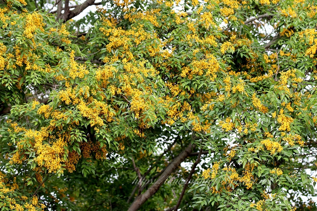 每棵樹的花開時間往往不超過三天,所以有人稱印度紫檀花朵為「一日黃金雨」。