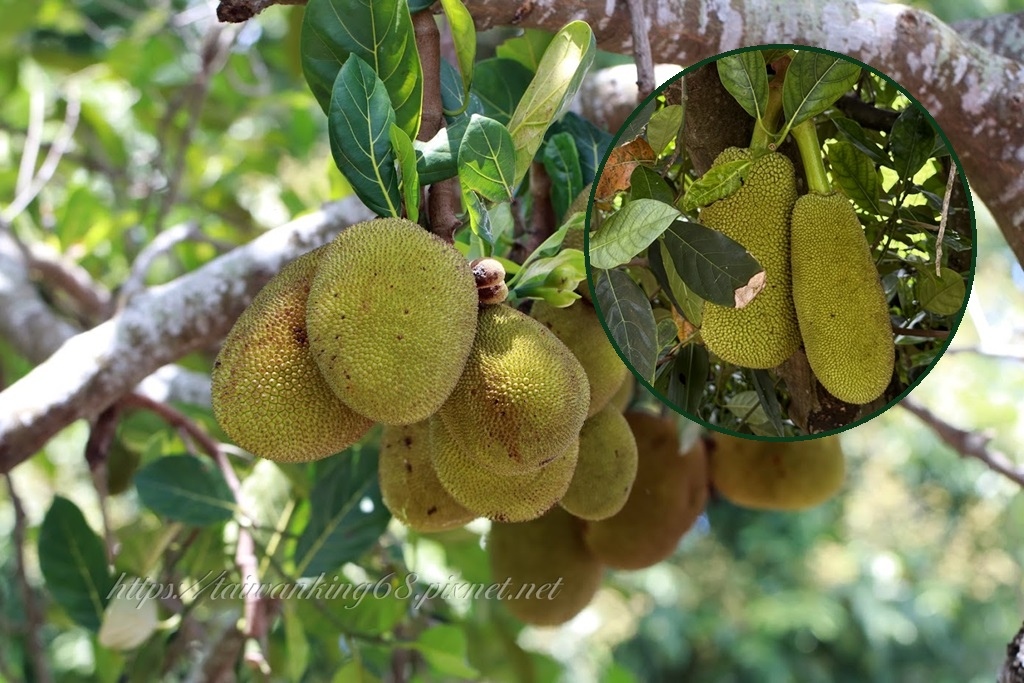 從上圖(↑)照片的麵包樹與波羅蜜外觀可看出它們的差異: