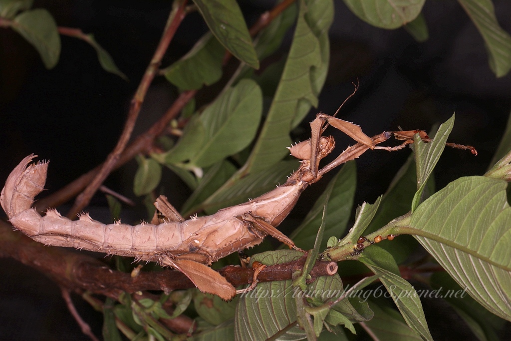 幽靈竹節蟲停棲翹起尾巴很像弓紋蟻舟蛾
