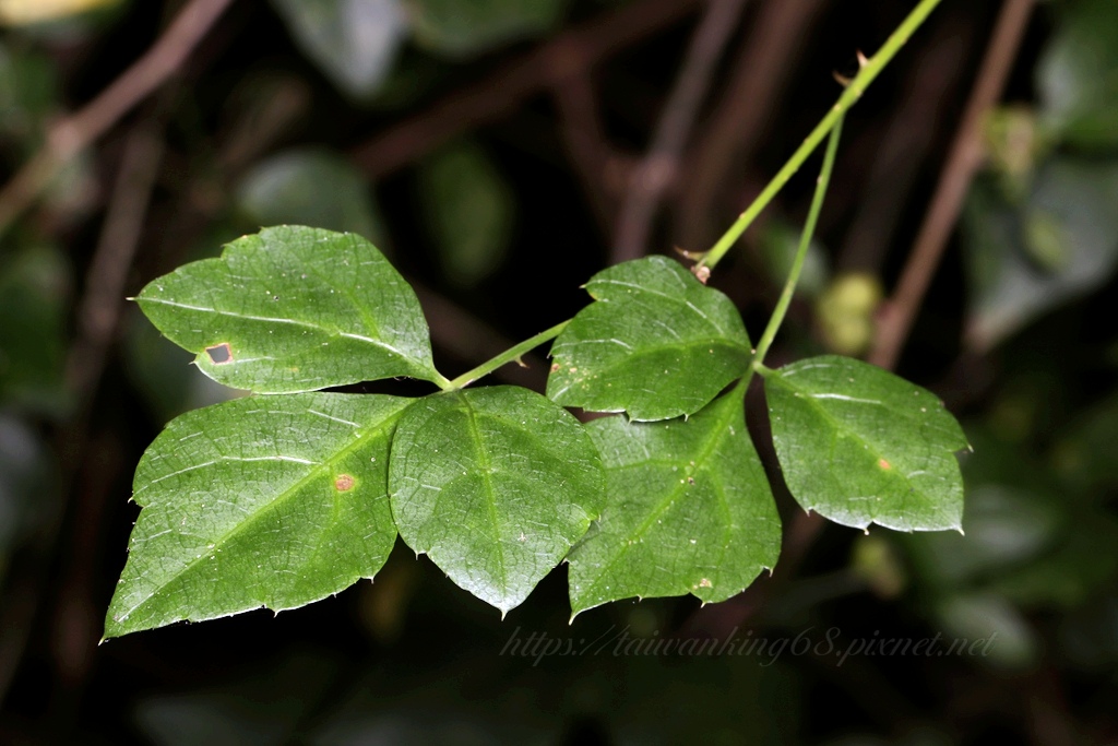 林中有一種植物同樣是三出複葉的三葉崖爬藤(上圖左)