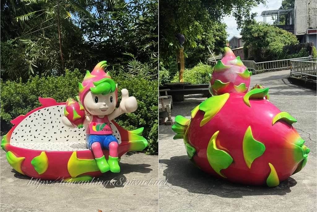 非常可愛的火龍果造型座椅,這也是最近才完工的藝術造景(↑)