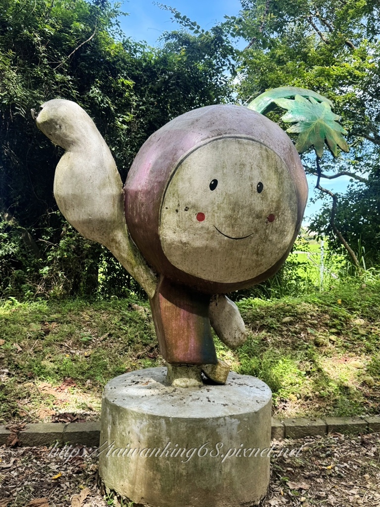 水流東桐花步道沿途設有外埔盛產的水果造景雕塑,上圖看得出是什麼水果嗎?